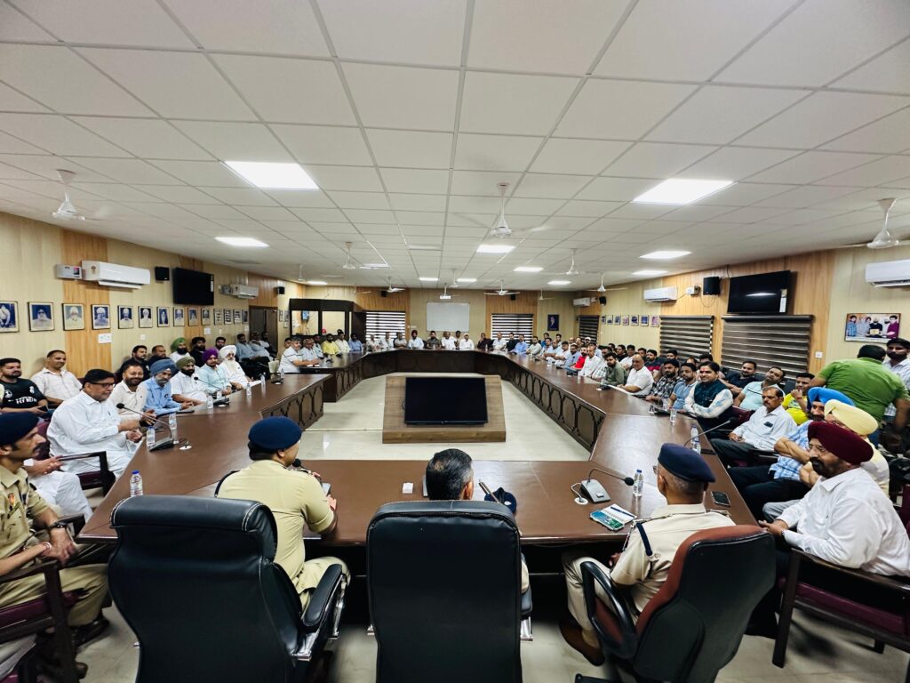 ਗੁਰਦਾਸਪੁਰ, 19 ਅਗਸਤ 2025 (ਮੰਨਨ ਸੈਣੀ )। ਡੀਆਈਜੀ ਸਾਈਬਰ ਕ੍ਰਾਈਮ ਸ੍ਰੀ ਨਵੀਨ ਸੈਣੀ ਵੱਲੋਂ ਅੱਜ ਸਥਾਨਕ ਪੰਚਾਇਤ ਭਵਨ ਵਿਖੇ ਸ਼ਹਿਰ ਦੇ ਵਪਾਰੀਆਂ, ਦੁਕਾਨਦਾਰਾਂ, ਡਾਕਟਰਾਂ ਅਤੇ ਹੋਰ ਪੇਸ਼ੇਵਰਾਂ ਨਾਲ ਮੀਟਿੰਗ ਕੀਤੀ ਗਈ। ਇਸ ਮੌਕੇ ਉਨ੍ਹਾਂ ਨਾਲ ਐੱਸ.ਐੱਸ.ਪੀ. ਗੁਰਦਾਸਪੁਰ ਸ੍ਰੀ ਆਦਿੱਤਯ ਅਤੇ ਹੋਰ ਪੁਲਿਸ ਅਧਿਕਾਰੀ ਵੀ ਹਾਜ਼ਰ ਸਨ।