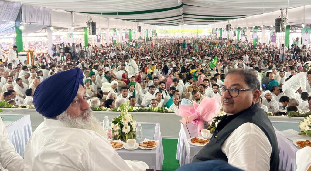 ਰੋਹਤਕ/ਚੰਡੀਗੜ੍ਹ 25 ਸਤੰਬਰ 2025 (ਦੀ ਪੰਜਾਬ ਵਾਇਰ)– ਸ਼੍ਰੋਮਣੀ ਅਕਾਲੀ ਦਲ ਦੇ ਪ੍ਰਧਾਨ ਸਰਦਾਰ ਸੁਖਬੀਰ ਸਿੰਘ ਬਾਦਲ ਨੇ ਅੱਜ ਲੋਕਾਂ ਨੂੰ ਜ਼ੋਰਦਾਰ ਅਪੀਲ ਕੀਤੀ ਕਿ ਖੇਤਰੀ ਪਾਰਟੀਆਂ ਨੂੰ ਮੁੜ ਸੱਤਾ ਵਿਚ ਲਿਆਂਦਾ ਜਾਵੇ ਅਤੇ ਜ਼ੋਰ ਦੇ ਕੇ ਕਿਹਾ ਕਿ ਸਿਰਫ ਖੇਤਰੀ ਪਾਰਟੀਆਂ ਹੀ ਕਿਸਾਨਾਂ ਟਤੇ ਗਰੀਬਾਂ ਦੇ ਹਿੱਤਾਂ ਦੀ ਰਾਖੀ ਕਰਨ ਦੇ ਸਮਰਥ ਹਨ।