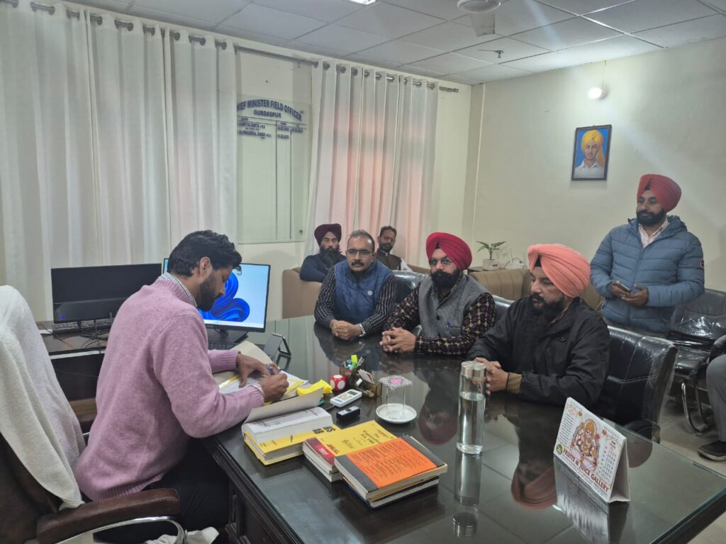 ਗੁਰਦਾਸਪੁਰ, 10 ਦਸੰਬਰ 2025 (ਮੰਨਨ ਸੈਣੀ)– ਅੱਜ ਸਾਂਝਾ ਅਧਿਆਪਕ ਮੋਰਚਾ ਅਤੇ ਬੀਐਲਓ ਯੂਨੀਅਨ ਗੁਰਦਾਸਪੁਰ ਦਾ ਇੱਕ ਸਾਂਝਾ ਵਫਦ ਅਨਿਲ ਕੁਮਾਰ ਕੁਲਦੀਪ ਸਿੰਘ ਪੁਰੋਵਾਲ ਸੋਮ ਸਿੰਘ ਅਤੇ ਸਰਬਜੀਤ ਸਿੰਘ ਦੀ ਸਾਂਝੀ ਅਗਵਾਈ ਵਿੱਚ ਬਲਾਕ ਸੰਮਤੀ ਤੇ ਜ਼ਿਲ੍ਹਾ ਪ੍ਰੀਸ਼ਦ ਦੀਆਂ ਚੋਣਾਂ ਵਿੱਚ ਦਰਪੇਸ਼ ਸਮੱਸਿਆਵਾਂ ਦੇ ਹੱਲ ਲਈ ਮਾਣਯੋਗ ਪੀਸੀਐਸ ਰਜਿੰਦਰਪਾਲ ਸਿੰਘ ਜੀ ਨੂੰ ਮਿਲਿਆ । ਉਹਨਾਂ ਮੰਗ ਪੱਤਰ ਦਿੱਤਾ ਗਿਆ ਅਤੇ ਸੰਖੇਪ ਮੀਟਿੰਗ ਬਹੁਤ ਵਧੀਆ ਮਾਹੌਲ ਵਿੱਚ ਹੋਈ ਤੇ ਵਫ਼ਦ ਵੱਲੋਂ ਪੇਸ ਕੀਤੀਆਂ ਮੰਗਾਂ ਨੂੰ ਅਧਿਕਾਰੀ ਵੱਲੋਂ ਬਹੁਤ ਗੰਭੀਰਤਾ ਨਾਲ ਸੁਣਿਆ ਗਿਆ ਅਤੇ ਅਤੇ ਮੰਗ ਪੱਤਰ ਵਿੱਚ ਦਰਜ ਮੰਗਾਂ ਨੂੰ ਹੱਲ ਕਰਨ ਦਾ ਭਰੋਸਾ ਦਿੱਤਾ ਗਿਆ ।