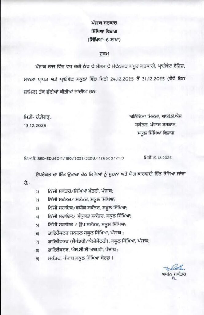 เจเฉฐเจกเฉเจเฉเฉเจน, 15 เจฆเจฟเจธเฉฐเจฌเจฐ 2025 (เจฆเฉ เจชเฉฐเจเจพเจฌ เจตเจพเจเจฐ)เฅค เจชเฉฐเจเจพเจฌ เจธเจฐเจเจพเจฐ เจจเฉ เจธเฉเจฌเฉ เจฆเฉ เจธเจฎเฉเจน เจธเจฐเจเจพเจฐเฉ, เจชเฉเจฐเจพเจเจตเฉเจ เจเจกเจฟเจก, เจฎเจพเจจเจคเจพ เจชเฉเจฐเจพเจชเจค เจ เจคเฉ เจชเฉเจฐเจพเจเจตเฉเจ เจธเจเฉเจฒเจพเจ เจฒเจ เจธเจฐเจฆเฉเจเจ เจฆเฉเจเจ เจเฉเฉฑเจเฉเจเจ เจฆเจพ เจเจฒเจพเจจ เจเจฐ เจฆเจฟเฉฑเจคเจพ เจนเฉเฅค