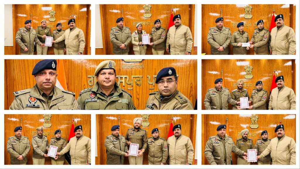 ਐੱਸ.ਐੱਸ.ਪੀ. ਗੁਰਦਾਸਪੁਰ ਵੱਲੋਂ ਸ਼ਲਾਘਾਯੋਗ ਕਾਰਗੁਜ਼ਾਰੀ ਲਈ ਪੁਲਿਸ ਅਧਿਕਾਰੀ ਅਤੇ ਕਰਮਚਾਰੀ ਸਨਮਾਨਿਤ