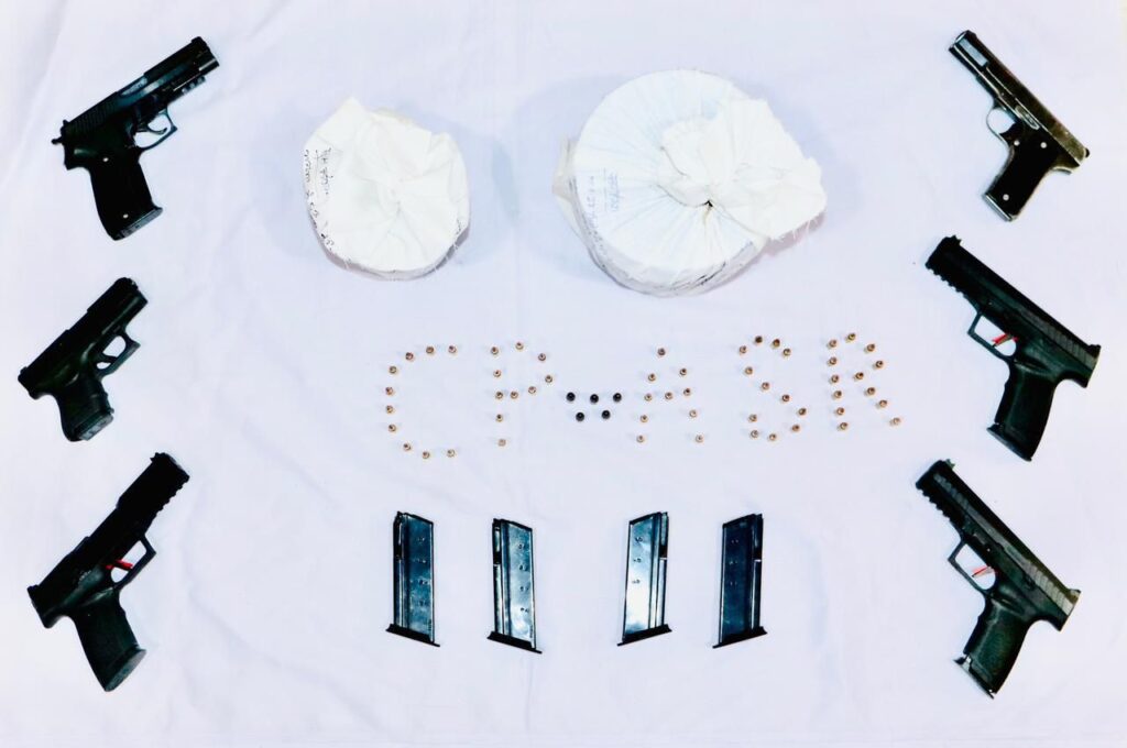 ਬਰਾਮਦ ਕੀਤੇ ਗਏ ਹਥਿਆਰਾਂ ਵਿੱਚ ਤਿੰਨ ਪੀ ਐਕਸ 5.7×28 ਐਮਐਮ ਟੀਆਈਐਸਏਐਸ ਟਰਕੀ ਪਿਸਤੌਲ, ਦੋ .30 ਬੋਰ ਅਤੇ ਇੱਕ 9 ਐਮਐਮ ਪਿਸਤੌਲ ਤੋਂ ਇਲਾਵਾ 60 ਜ਼ਿੰਦਾ ਕਾਰਤੂਸਾਂ ਵੀ ਸ਼ਾਮਲ ਹਨ। ਇਸ ਕਾਰਵਾਈ ਵਿੱਚ ਬਰਾਮਦ ਕੀਤੇ ਗਏ ਆਧੁਨਿਕ ਆਟੋਮੈਟਿਕ ਪੀ ਐਕਸ 5.7×28 ਐਮਐਮ ਟੀਆਈਐਸਏਐਸ ਟਰਕੀ ਸੀਰੀਜ਼ ਪਿਸਤੌਲ ਨਵੀਨਤਮ ਹਥਿਆਰ ਹੈ ਅਤੇ ਇਹ ਦੁਰਲੱਭ ਬਰਾਮਦਗੀਆਂ ਵਿੱਚੋਂ ਇੱਕ ਹਨ।