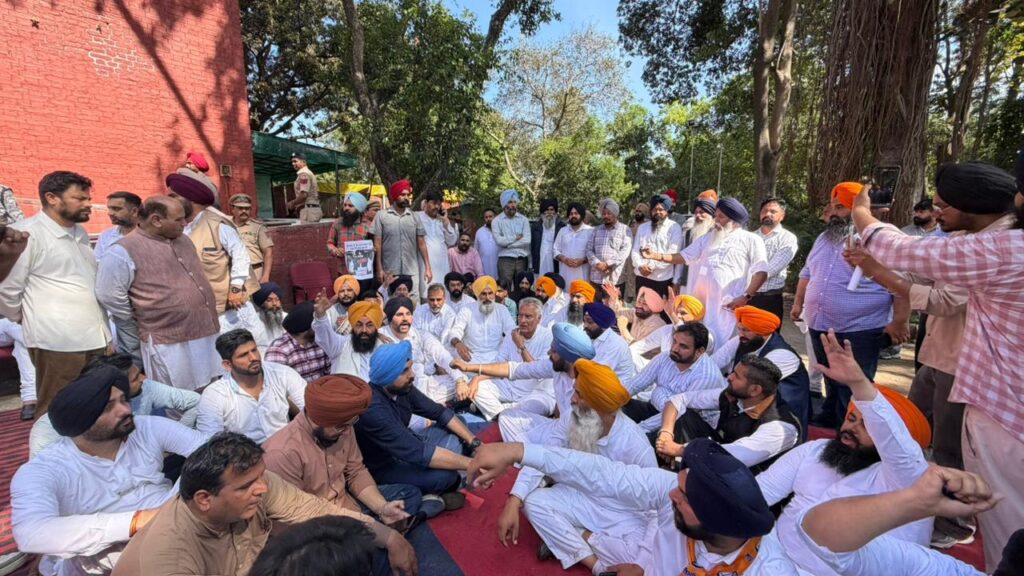 ਚੰਡੀਗੜ੍ਹ22ਮਾਰਚ 2026 (ਦੀ ਪੰਜਾਬ ਵਾਇਰ)  – ਆਮ ਆਦਮੀ ਪਾਰਟੀ ਦੇ ਮੰਤਰੀ ਲਾਲਜੀਤ ਸਿੰਘ ਭੁੱਲਰ ਵੱਲੋਂ ਪੰਜਾਬ ਵੇਅਰ ਹਾਊਸ ਦੇ ਜ਼ਿਲ੍ਹਾ ਮੈਨੇਜਰ ਗਗਨਦੀਪ ਰੰਧਾਵਾ ਨੂੰ ਮਹਿਜ਼ ਇੱਕ ਟੈਂਡਰ ਲਈ ਤਸ਼ੱਦਦ ਕਰਕੇ ਖੁਦਕੁਸ਼ੀ ਲਈ ਮਜਬੂਰ ਕਰਨ ਤੋਂ ਬਾਅਦ ਮੰਤਰੀ ਦੀ ਗ੍ਰਿਫਤਾਰੀ ਲਈ ਅੱਜ ਸਾਰੀਆਂ ਵਿਰੋਧੀ ਤਰਹਾਂ ਸ਼੍ਰੋਮਣੀ ਅਕਾਲੀ ਦਲ, ਭਾਜਪਾ ਤੇ ਕਾਂਗਰਸ ਦੇ ਆਗੂਆਂ ਵੱਲੋਂ ਚੰਡੀਗੜ੍ਹ ਵਿਖੇ ਮੁੱਖ ਮੰਤਰੀ ਦਫਤਰ ਦਾ ਘੇਰਾਓ ਤੇ ਪ੍ਰਦਰਸ਼ਨ ਕੀਤਾ ਗਿਆ l ਇਸ ਮੌਕੇ ਪੰਜਾਬ ਭਾਜਪਾ ਪ੍ਰਧਾਨ ਸੁਨੀਲ ਜਾਖੜ, ਸ਼੍ਰੋਮਣੀ ਅਕਾਲੀ ਦਲ ਦੇ ਸੀਨੀਅਰ ਨੇਤਾ ਤੇ ਸਾਬਕਾ ਮੰਤਰੀ ਸ. ਬਿਕਰਮ ਸਿੰਘ ਮਜੀਠੀਆ ਅਤੇ ਕਾਂਗਰਸ ਤੋਂ ਪ੍ਰਤਾਪ ਸਿੰਘ ਬਾਜਵਾ ਮੁੱਖ ਤੌਰ ਤੇ ਮੌਜੂਦ ਸਨ।